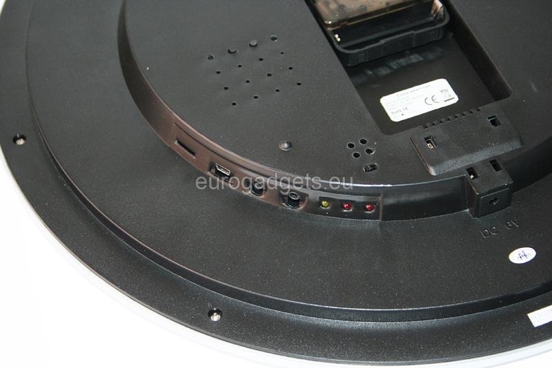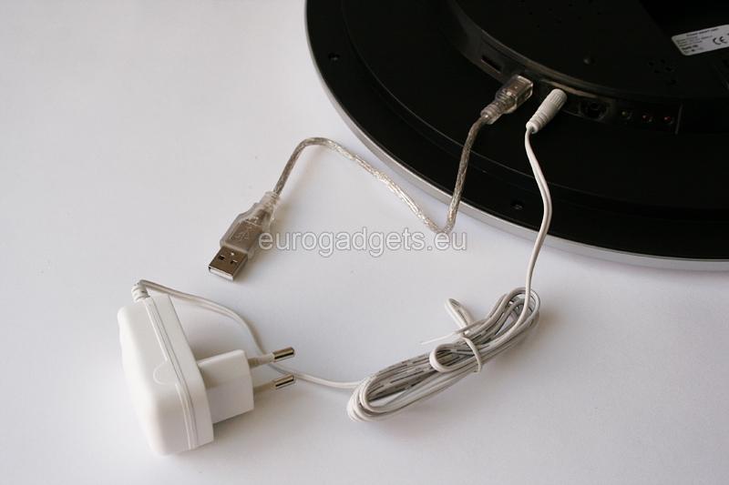 The approximate size is 400 MB. The clock is powered by a single AA battery, 1.5 V.
