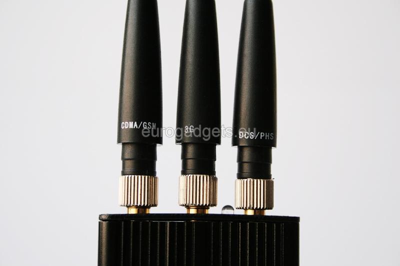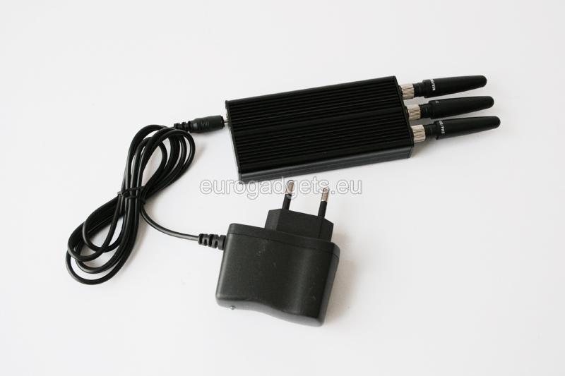 Small in size and extremely lightweight, portable GSM jammer. This device successfully jams CDMA / GSM :860-970 MHz, 3G :2110-2170 MHz and DCS / PHS :1805-1930 MHz within 10 meters range (jamming perimeter depends on the strength of the GSM signal in the area).